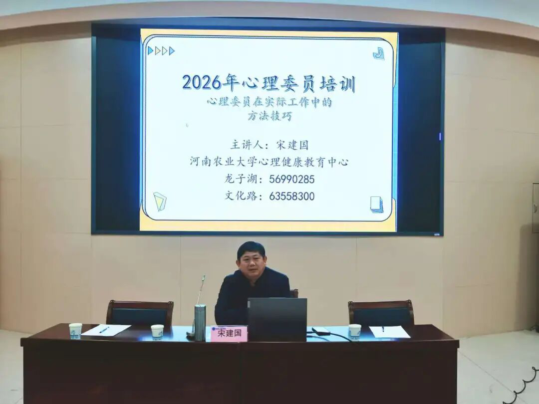 会上,宋建国老师围绕心理健康现状与重点工作作出部署,结合典型案例警示及时干预的重要性,明确心理骨干需做好日常观察、信息上报等核心职责,强调要严守保密原则、守护同学身心健康。