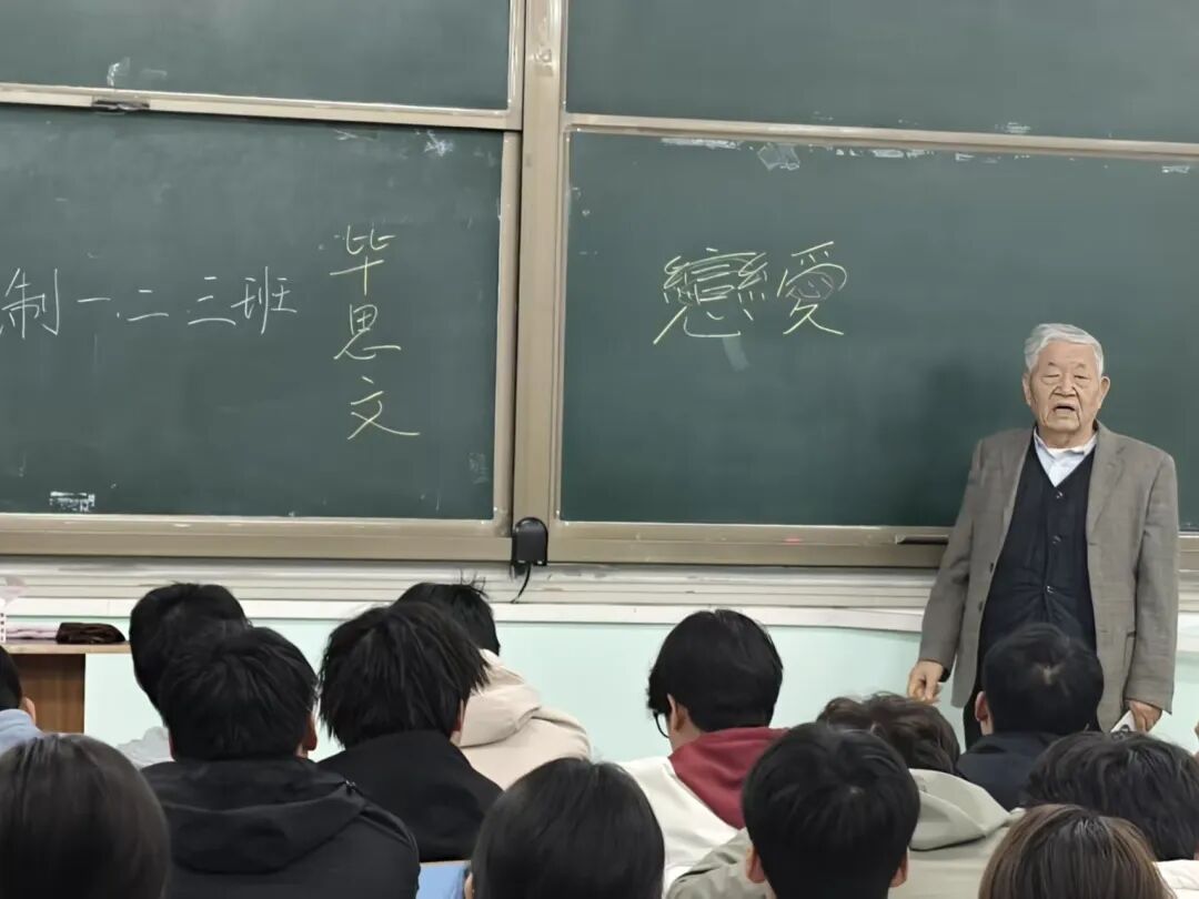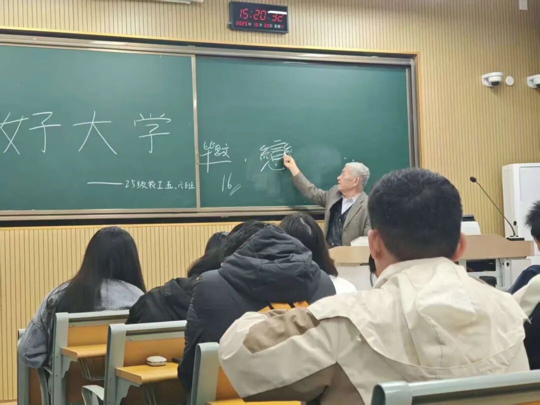 讲座中,刘教授紧扣“读好大学”核心话题,在黑板写下繁体“恋爱”二字,从字理笔画入手展开解读,以此引导新生思考大学阶段的成长内涵,阐释大学不仅是知识学习的殿堂,更是人格塑造、认知提升的关键时期。